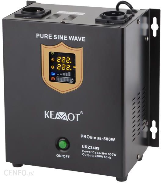 W wielu domach występują urządzenia, które na co dzień ułatwiają nam życie, ale do prawidłowej pracy wymagają ciągłego zasilania. W okresie zimowym wśród tego typu sprzętu na szczególną uwagę zasługują piece i pompy oraz inne instalacje gwarantujące ogrzewanie domu. Co jednak zrobić w sytuacji zaniku prądu Systemy awaryjnego zasilania marki KEMOT służą do ochrony wybranych urządzeń przed zakłóceniami zasilania, których konsekwencją może być zaburzenie lub też przerwanie ich pracy. Seria urządzeń PROsinus marki KEMOT doskonale sprawdzi się do zasilania np. pomp centralnego ogrzewania lub pomp w instalacjach kominków, a także silników indukcyjnych, czy np. urządzeń automatyki instalacji z wykorzystaniem konwektorów ciepła oraz wszelkich urządzeń wyjątkowo wrażliwych na najmniejsze zmiany kształtu napięcia. Ich zaletą jest czysty sinusoidalny przebieg napięcia wyjściowego (zasilającego odbiory), dzięki któremu urządzenie zapewnia stabilną pracę, zapobiegając efektowi przegrzewania się odbiorów indukcyjnych. Wraz z akumulatorem 12V stanowią kompletne urządzenie zasilania gwarantowanego 230 VAC. Zastosowanie Awaryjne zasilanie pieców Urządzenia RTV (telewizory, tunery, hi-fi, dvd) Urządzenia AGD (lodówki, blendery) Elektronarzędzia (wiertarki, szlifierki) Zasilanie ładowarek (smartfony, tablety, telefony, laptopy, gps-y) Pompy, sprężarki (wody, ciepła, klimatyzatory) Urządzenia biurowe ( faksy, komputery, monitory) Inne urządzenia o mocy zasilania do 500 W przy pracy ciągłej Zabezpieczenia Zabezpieczenie przed przeciążeniem Zabezpieczenie przed zwarciem Zabezpieczenie przed zbyt wysokim napięciem Zabezpieczenie przed zbyt niskim napięciem Urządzenie może pracować w trzech trybach Jako awaryjne żródło zasilania z funkcją ładowania – przetwarza napięcie stałe 12V DC podawane z akumulatora zewnętrznego na napięcie zmienne 230V AC oraz doładowuje akumulator zewnętrzny. Jako prostownik – doładowuje akumulator zewnętrzny Jako przetwornica – przetwarza napięcie stałe 12V DC z akumulatora na napięcie zmienne 230V AC Czytelny i przejrzysty wyświetlacz LED ze wskażnikami aktualnego statusu Moc znamionowa: 500 WRodzaj baterii: 12 V DCMaksymalne napięcie akumulatora: 15 V DCZakres napięcia wejściowego: 180 ~ 275 V ACCzęstotliwość wejściowa: 45 ~ 60 HzZakres napięcia wyjściowego: 230 V AC +/-8%Częstotliwość wyjściowa: 50/60 Hz +/-0,5 HzKształt napięcia wyjściowego: Czysta sinusoidaEfektywność wyjściowa >=85% ( DC na AC )Prąd ładowania akumulatora: Maks. 10 ACzas przełączania: …