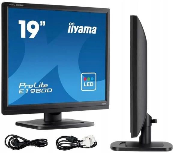 Monitor iiyama Prolite E1980D-B1 19″, TN LEDKod produktu: E1980D-B1Ekran 19″,LEDTNRozdzielczość wyświetlania 1280x1024Kontrast statyczny 1000:1Złącza VGA x1, DVI x1Czas reakcji 5 msStandard VESA 100x100Iiyama E1980D-B1E1980D-B1 to 19-calowy monitor (1280×1024 pikseli) z podświetlaniem LED wyposażony w matrycę TN oferującą doskonałe odwzorowanie kolorów, szerokie kąty widzenia – 160 stopni w pionie i 170 w poziomie oraz bardzo wysokie współczynniki kontrastu 1000:1 (kontrast typowy) i 12 000 000 : 1 (kontrast dynamiczny ACR).Wysoka jakośćDzięki rozdzielczości natywnej 1280×1024 Twój monitor jest gotowy wyświetlać obrazy wysokiej rozdzielczości. Oznacza to również, że na ekranie zmieści się dużo więcej informacji niż na monitorze z mniejszą rozdzielczością.Specyfikacja technicznaPrzekątna ekranu: 19″Powłoka matrycy: MatowaRodzaj matrycy: TN LEDRozdzielczość ekranu: 1280x1024Zakrzywiony ekran (Curved): NieFormat ekranu: 5:4Wielkość plamki: 0.294 mmJasność: 250 cd/m²Kontrast statyczny: 1 000:1Kontrast dynamiczny: 12 000 000:1Kąt widzenia w poziomie: 170Kąt widzenia w pionie: 160Czas reakcji: 5msLiczba kolorów: 16.7mlnZłącza: VGA x1 DVI x1Głośniki: 2 x 1WObrotowy ekran (PIVOT): NieStandard VESA: 100 x 100Kolor: CzarnySzerokość: 411 mmWysokość: 402 mmGłębokość: 204.5mmWaga: 3.2kgDołączone akcesoria: Kable: zasilający, DVI Pozostałe: skrócona instrukcja obsługi, instrukcja bezpieczeństwa#HID: